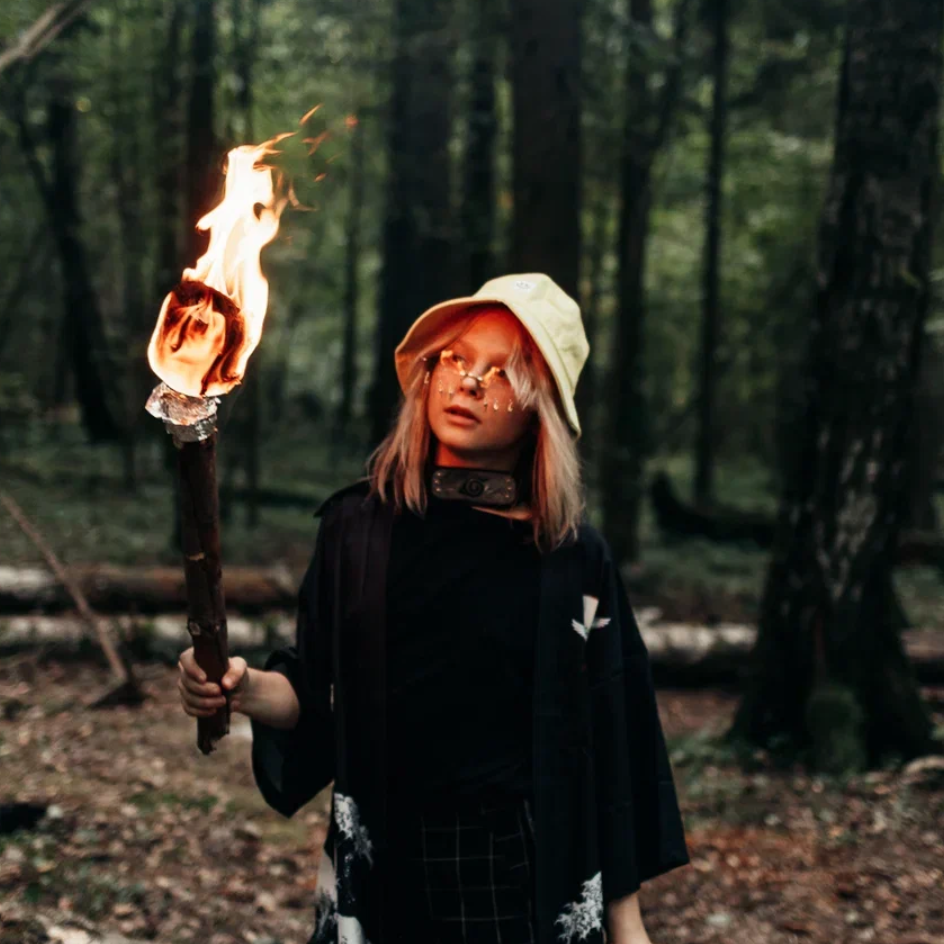 Использует простые материалы леса, для крафта вещей. Костер, шалаш, огонь, стол, копье